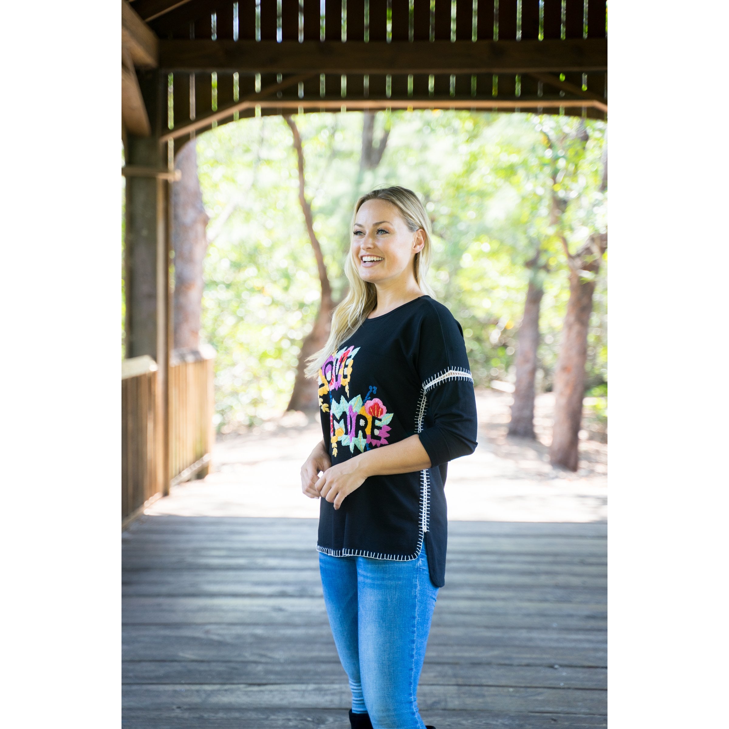 Love More hand inspirational Embroidered top